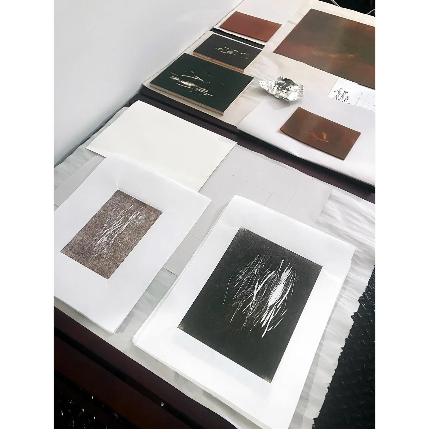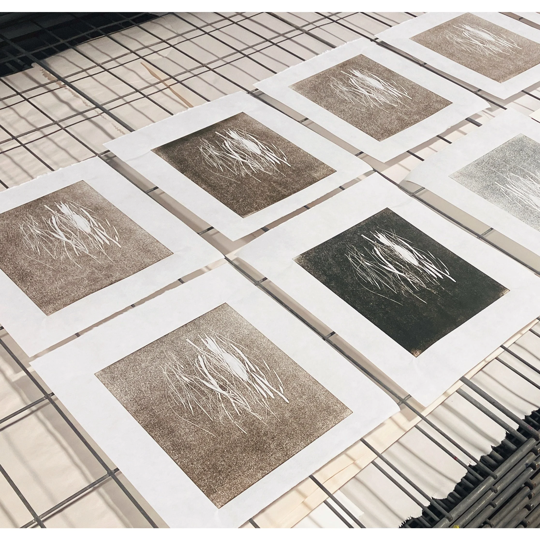 These processes also offer an element of “taking away” or “removal” (removing wood from the block as it is carved into, or taking away ink from a plate to make a monoprint) which serve as a metaphor for the removal of hesitation, doubt, or fear we must process in order to speak.