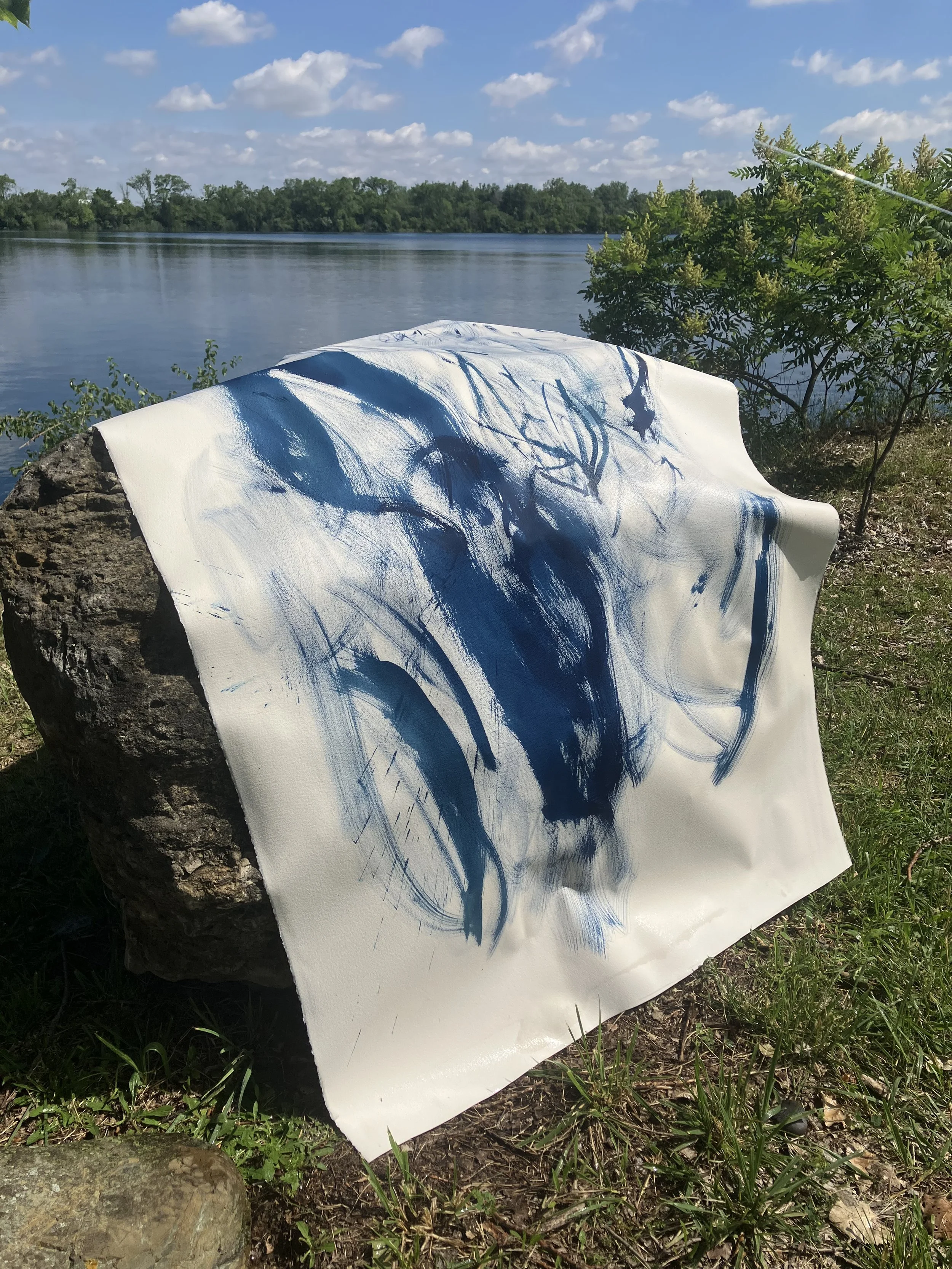 Through the cyanotype process, Ryn responds to and makes visible internal, intuitive understandings of the self. In the space of process, which includes mark making with cyanotype chemicals, exposure, and rinsing the work, Ryn facilitates a inquiry - based dialogue between her inner self, the “I” and her outer self, the “me.” Through her work, within this space of “seeking to know,” comes what Mead describes as an “organization of the self,” a deliberative, negotiated, placement of what once was and what may come in one’s state of “being.”